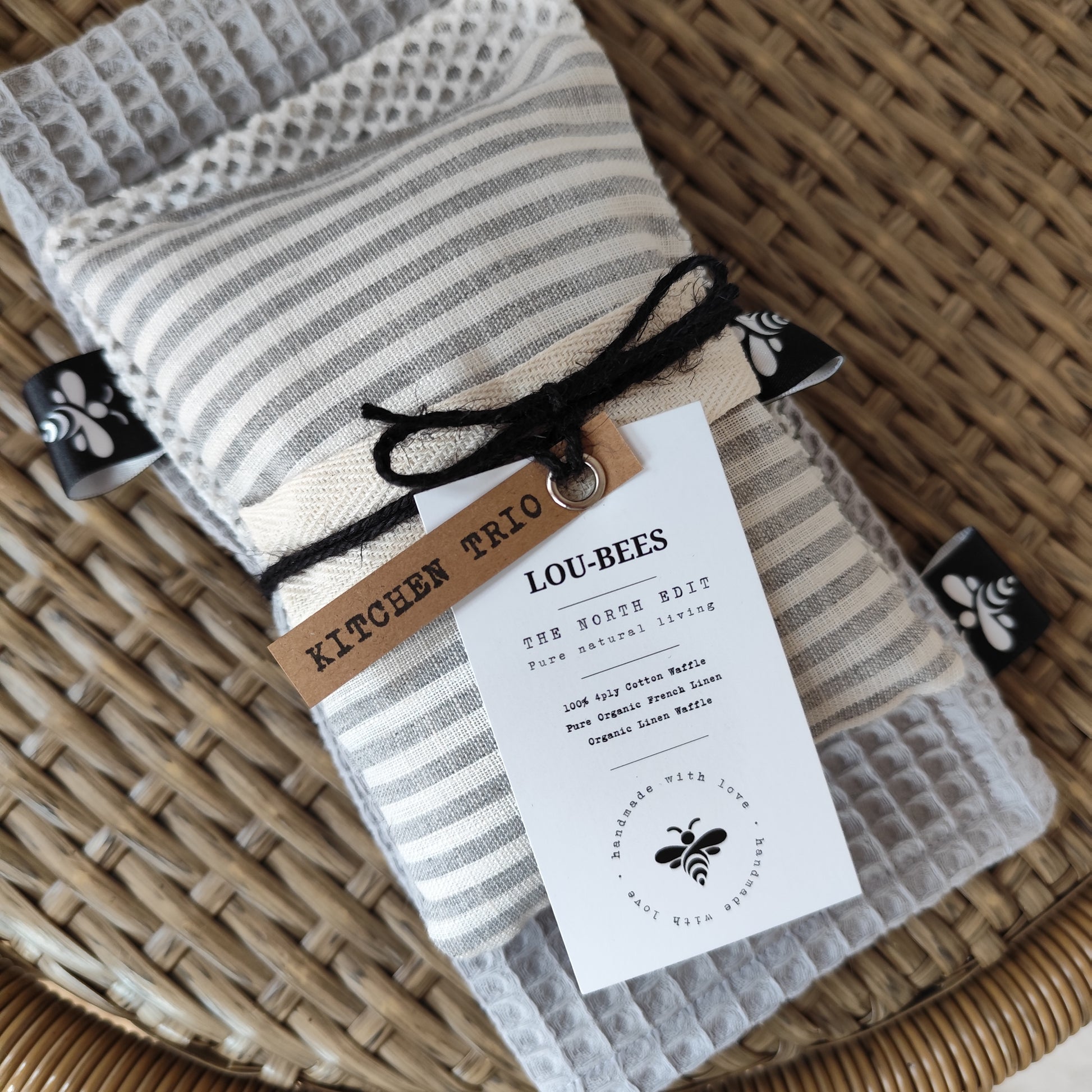 Where calm living meets conscious choices. This beautiful Eco Kitchen Trio Pack is where timeless design meets sustainable living. This set includes three eco-friendly essentials:
