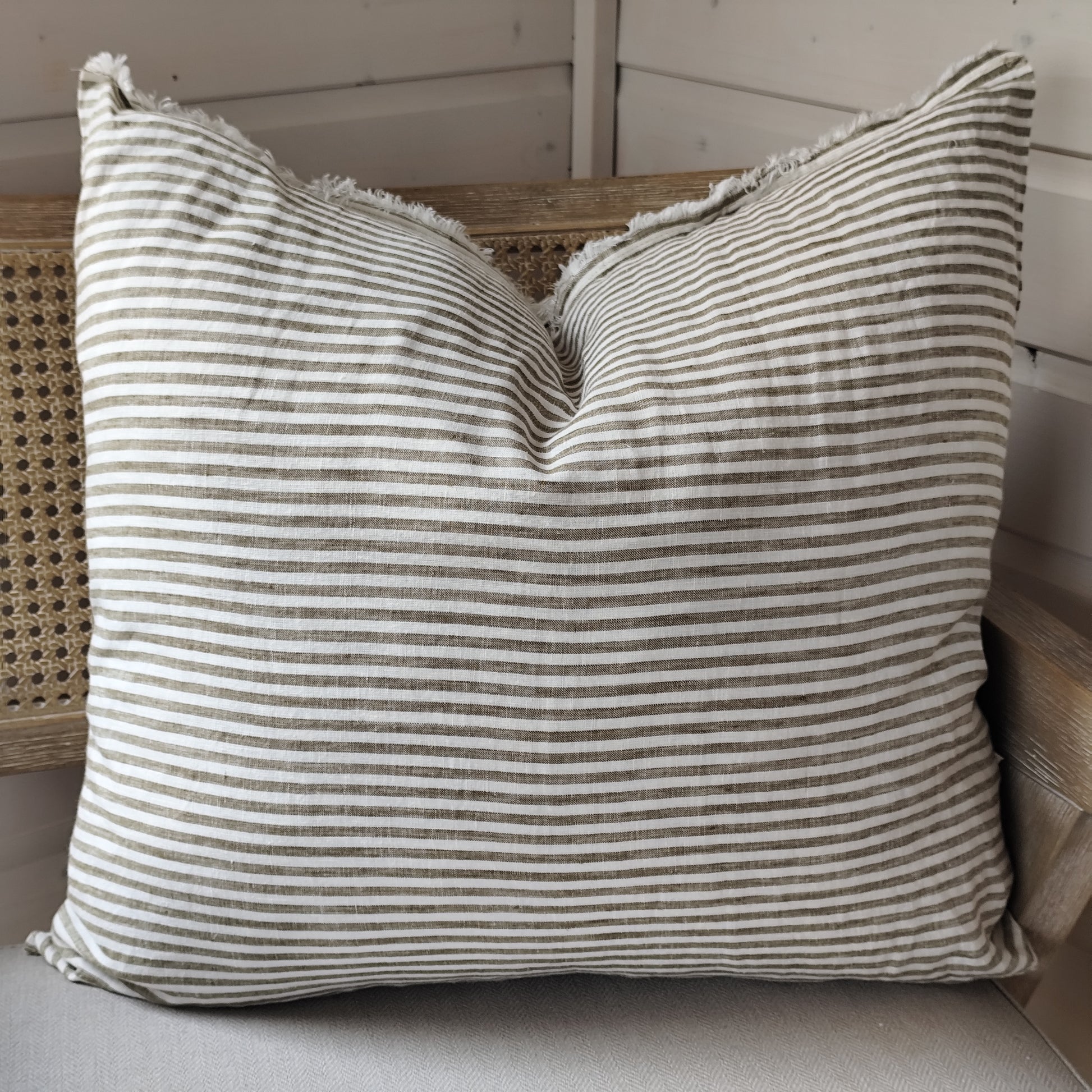 Esmee Linen Cushion Cover – Frayed Edge Olive Stripe