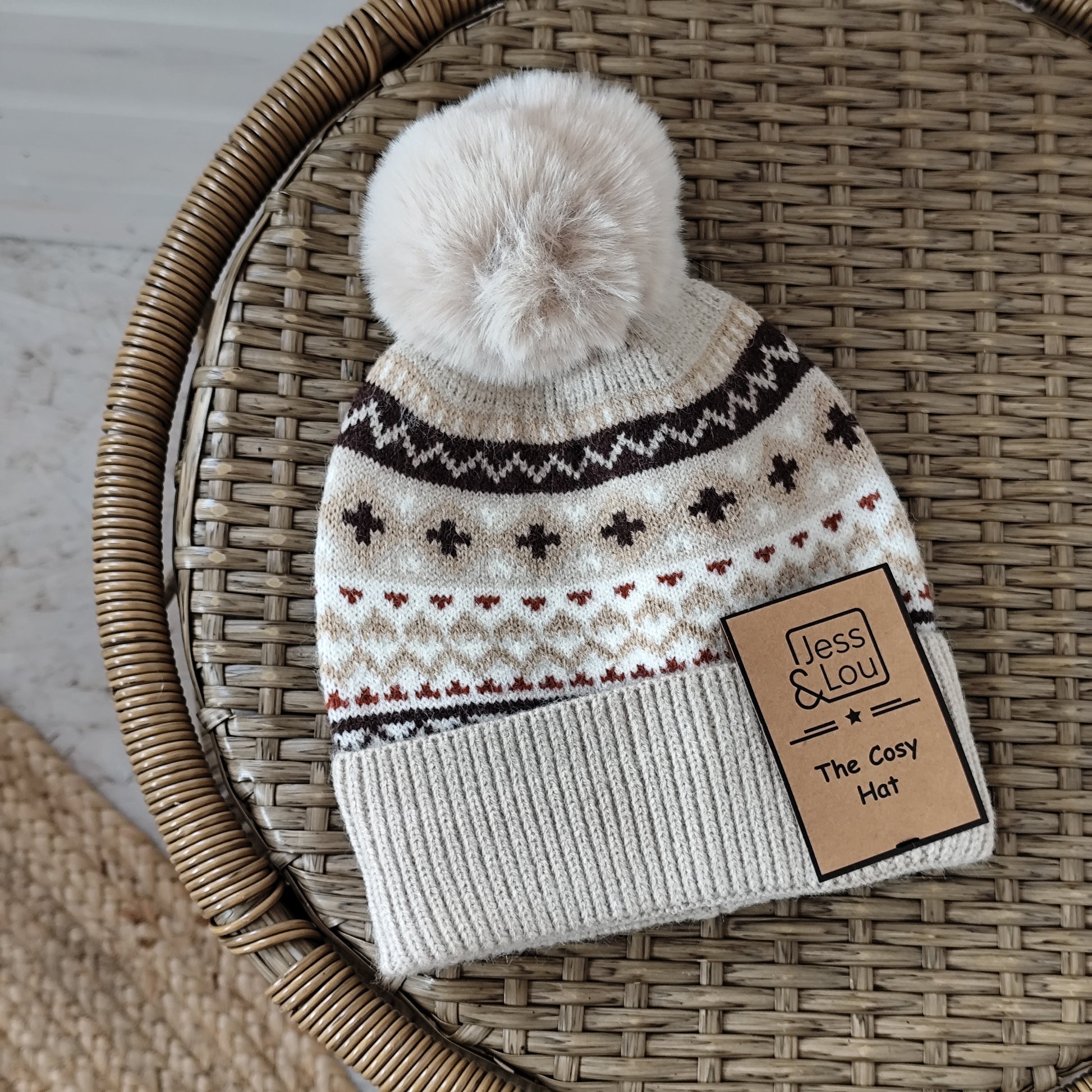 Jess & Lou - Cosy Pom Pom Beanie - Nordic Neutral