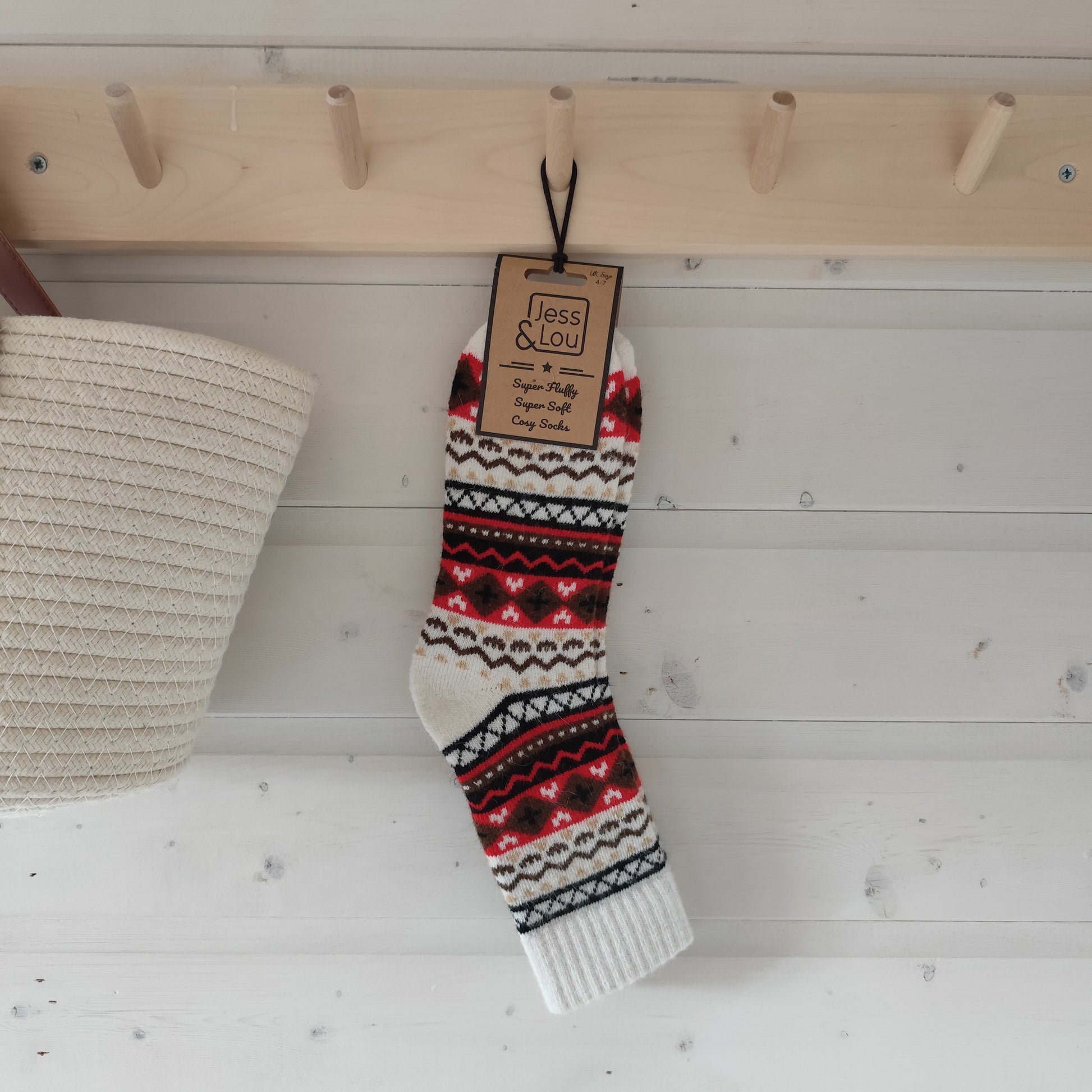 Jess & Lou - Super Soft, Cosy Socks - Nordic Red