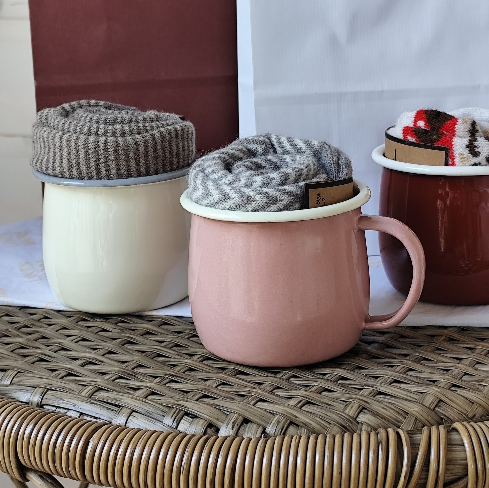 Includes: 1 x Cream Belly Mug + 1 x Pair of Cosy Brown Stripe Socks