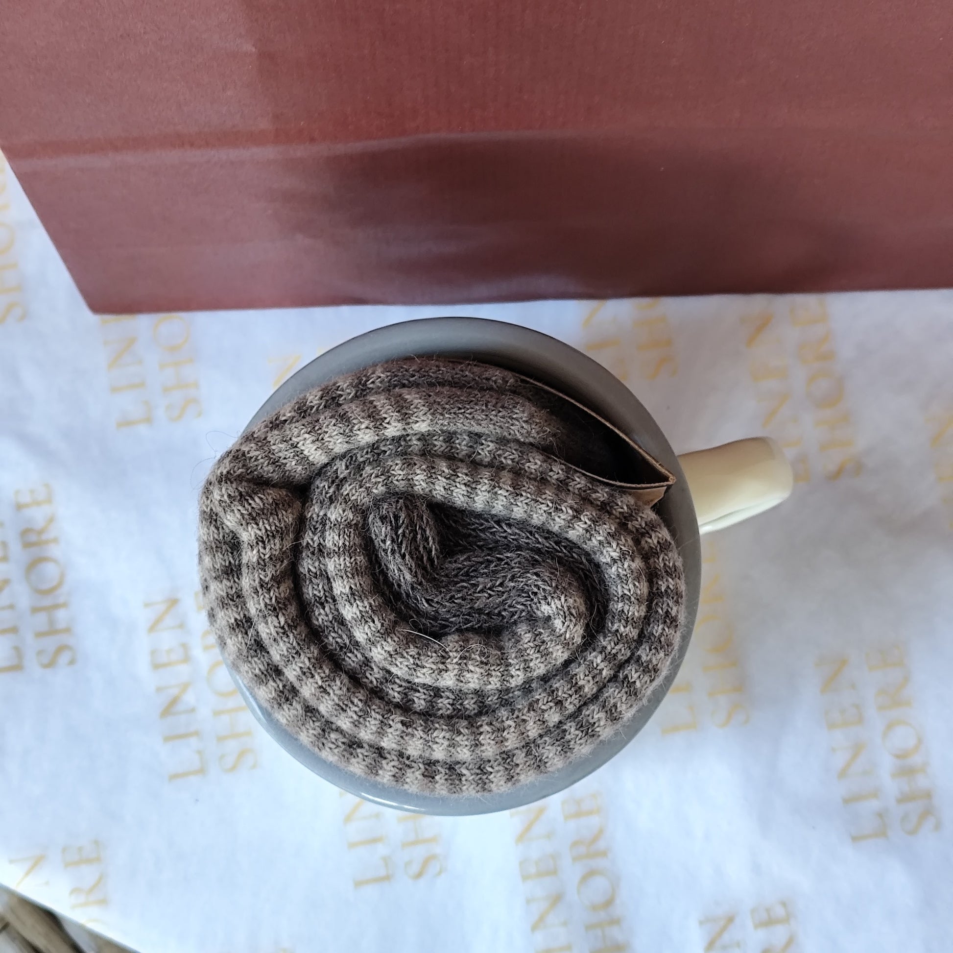 Socks: Soft, warm and snug with a classic brown stripe pattern